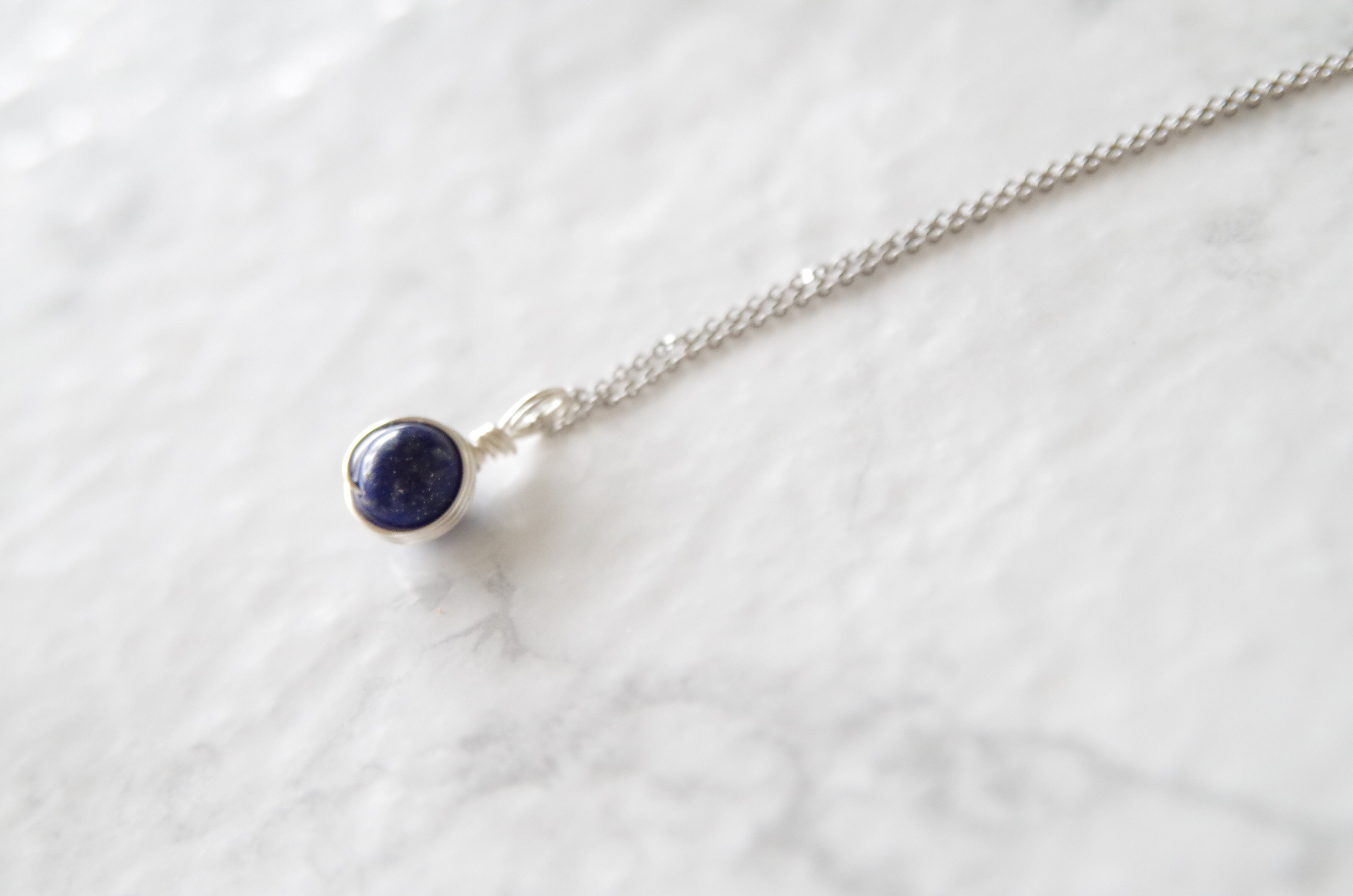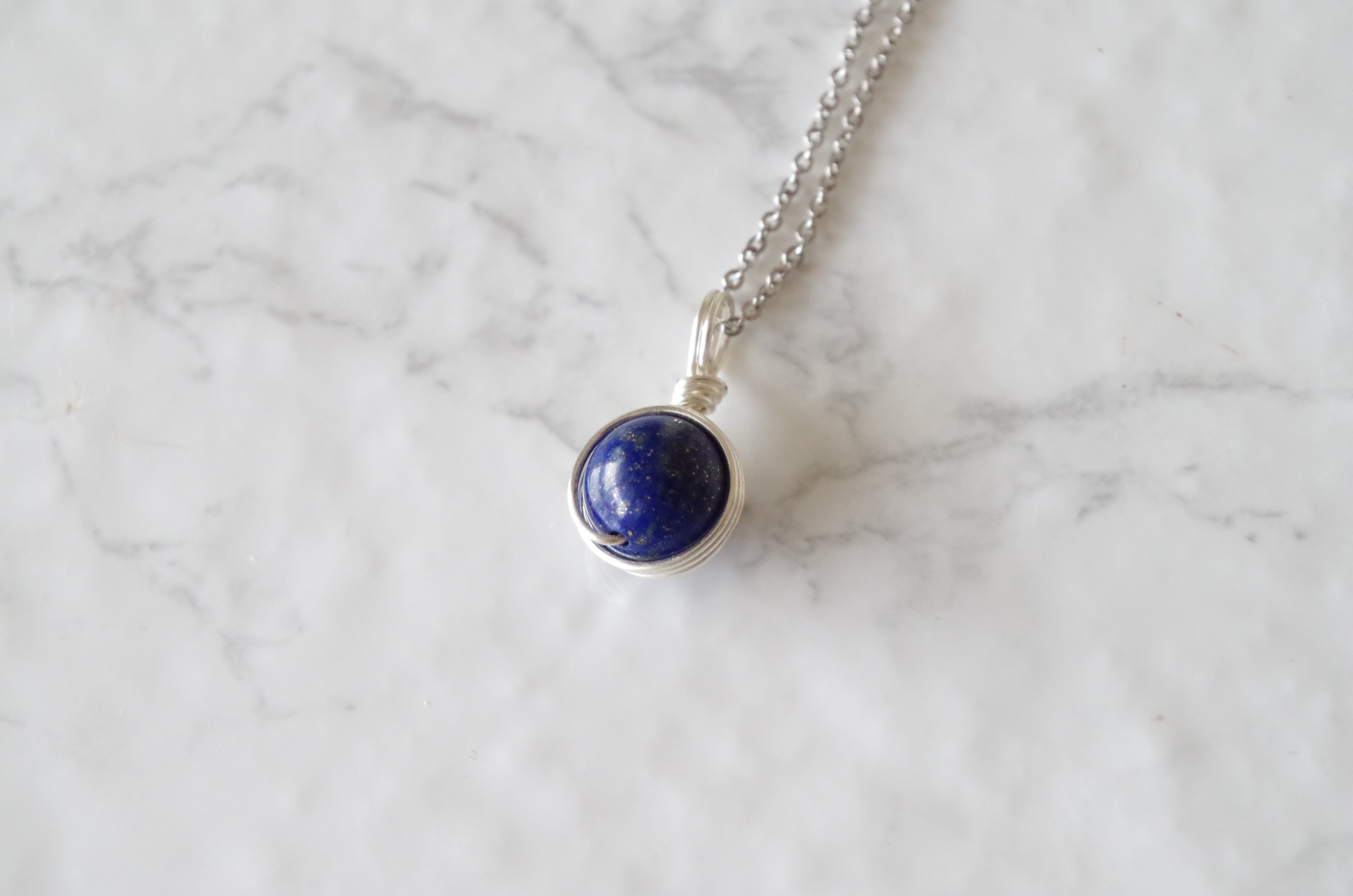星空のような輝きのラピスラズリをシルバーのワイヤーでシンプルに巻きつけたネックレスです。シンプルなデザインなのでどんな場面でもご使用いただけます。